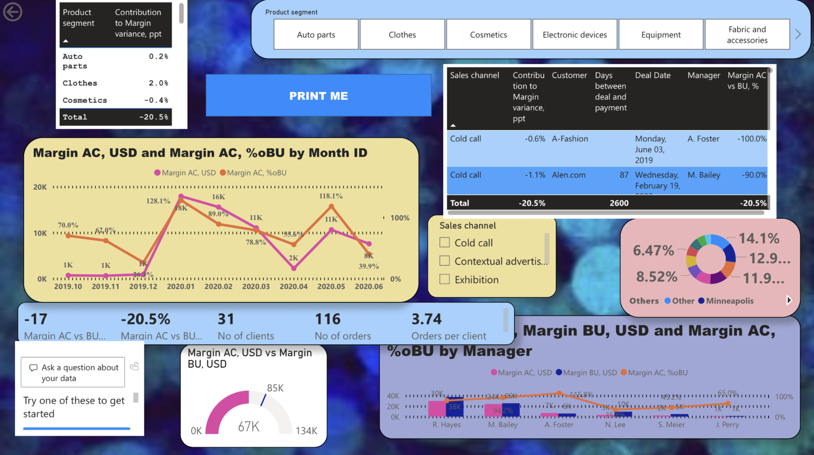 You can follow the advice of the visualization compass or try different things from ready-made examples! Nice color combinations look cool. I've always had a bad time with the selection of colors... And everything is beautiful here. Then you can change the dashboard for new ideas.