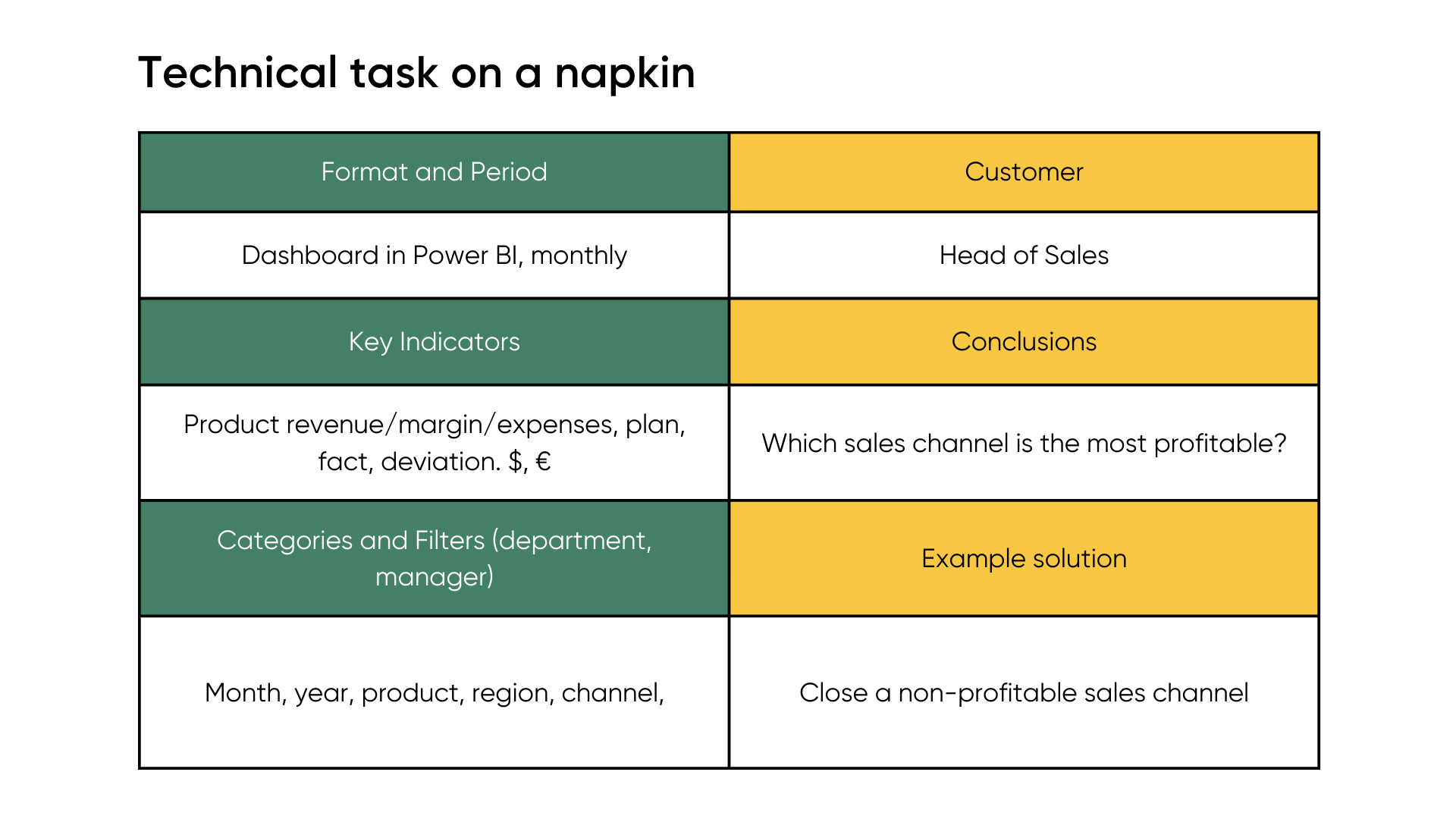 How to properly present a dashboard, interactive demonstration scenario. AIDA methodology